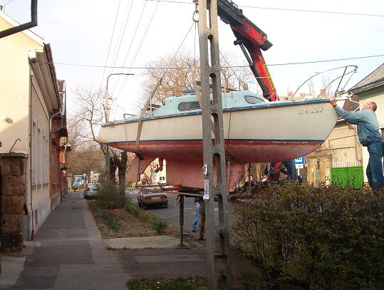 2006. Aug.: A hajó kipróbálása a Dunán (Motor, vitorlák, árboc...)